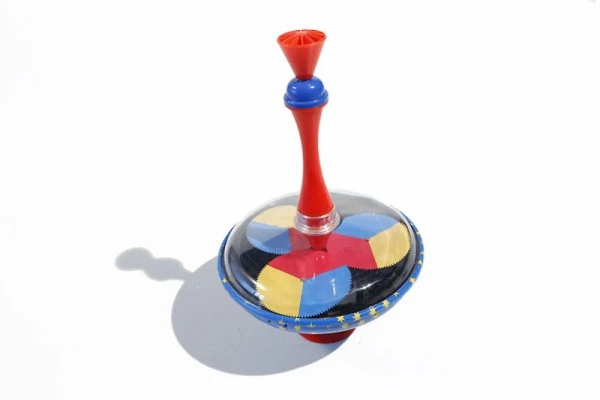 Dieser Brummkreisel brummt gar nicht, er hat einen anderen tollen Effekt! Auf der Kreiseloberfläche sind grafische Formen in rot-gelb-blau aufgedruckt. Wenn der Kreisel nun Fahrt aufnimmt, verschwimmen die Farben und bilden neue Muster in den Mischfarben – spannend zu beobachten!