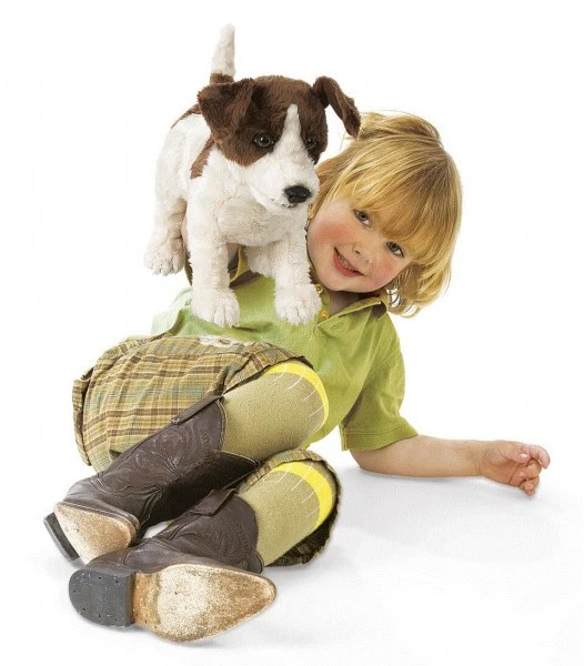 Wuff wuff! Der kleine Jack Russell Terrier von Folkmanis meldet sich lautstark zu Wort. Und auch sonst kann die Handpuppe so ziemlich alles, was ein echter Hund auch kann: hecheln, mit dem Schwanz wedeln, nach Fliegen schnappen, schnuppern oder den Kopf schief legen. Noch dazu hat der Terrier super weiches Fell und einen munteren Gesichtsausdruck – der kleine Wicht verzaubert schon beim ersten Anblick.
