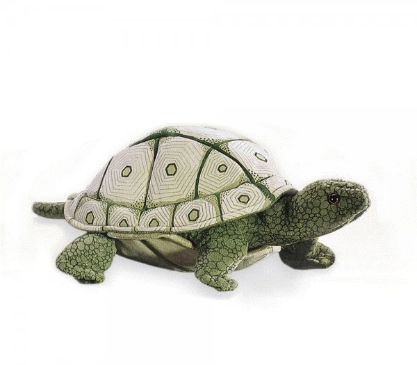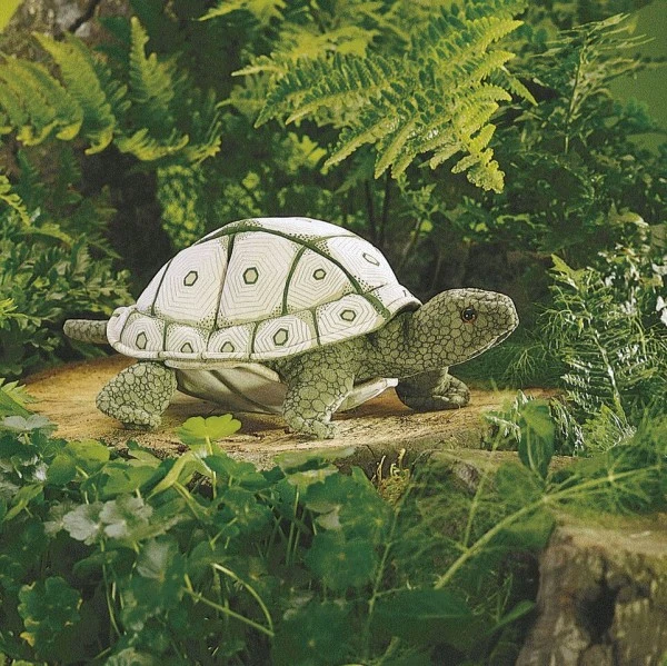 Langsam lugt der kleine Kopf neugierig aus dem Panzer hervor: Die Landschildkröte mag zwar nicht die Schnellste sein, dafür hat sie schon einige Jahre überdauert. Was meinst Du wie alt ist sie wohl schon? Diese Handpuppe von Folkmanis jedoch wird noch nicht so viele Jahre auf dem Buckel haben wie ihr tierisches Vorbild. Dennoch sieht sie der echten Landschildkröte sehr ähnlich. Besonders naturgetreu ist der detailliert gearbeitete Panzer der Handpuppe.
