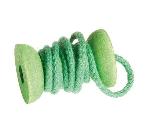 Die bunten Holzspule, die an leere Garnrollen erinnern, lassen sich farblich sortiert auf ihre 6 Steckplätze auf dem Brett ordnen. Da sie ganz durchbohrt sind, können sie aber auch aufgefädelt werden. Auch umwickeln kann man sie, mit dicken Wollfäden zum Beispiel. Kullern lassen, stapeln, Stäbchen reinstecken, mal schauen was noch so alles passiert!