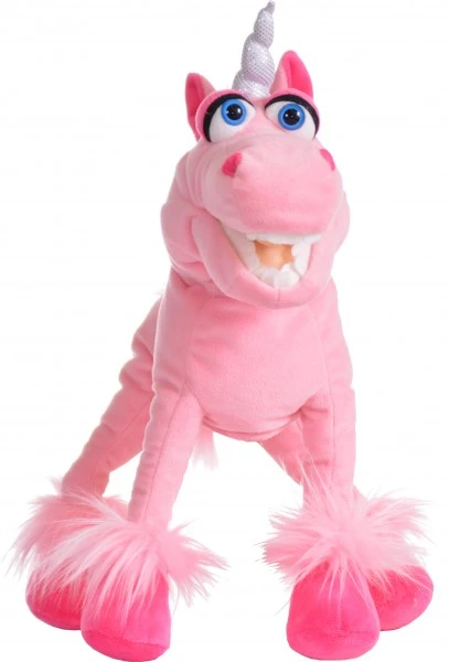 Einhorn Hörnchen ist ein Knüller! Die rosa Handpuppe bietet großartige Möglichkeiten, um lustige Geschichten und verrückte Märchen zu erzählen. Vielleicht wird Hörnchen aber auch einfach nur eine gute Freundin und Spielgefährtin – äh oder ist es ein Hengst? Wir wissen es nicht, bei den Handpuppen bleibt vieles eurer Fantasie überlassen und das ist ja gerade das Schöne! • Handpuppe 41cm • Maul und Kopfbespielbar • Handeingang im Bauch