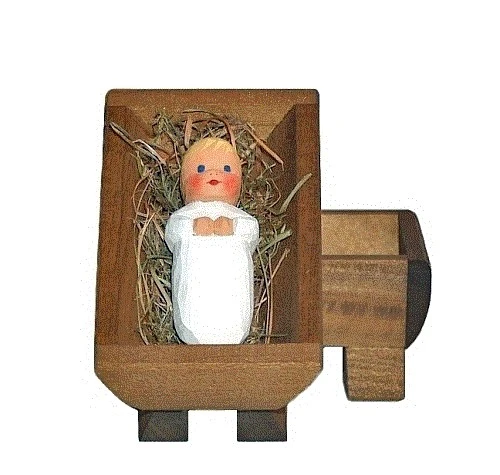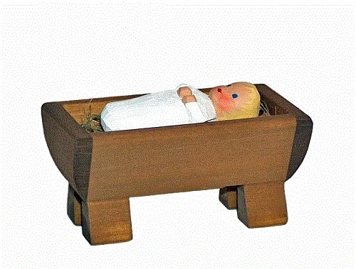 Die Krippe hat eine Länge von 7 cm. Das Christkind passt ideal in die Krippe. Dieses zweiteilige Set ist der zentrale Bestandteil jeder Weihnachtskrippe.