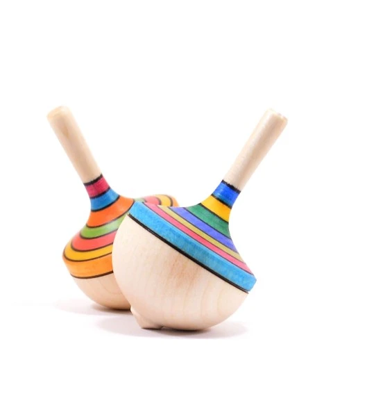 Traditionell heißt dieser schöne bauchige Fingerkreisel mit fröhlichen Streifen.