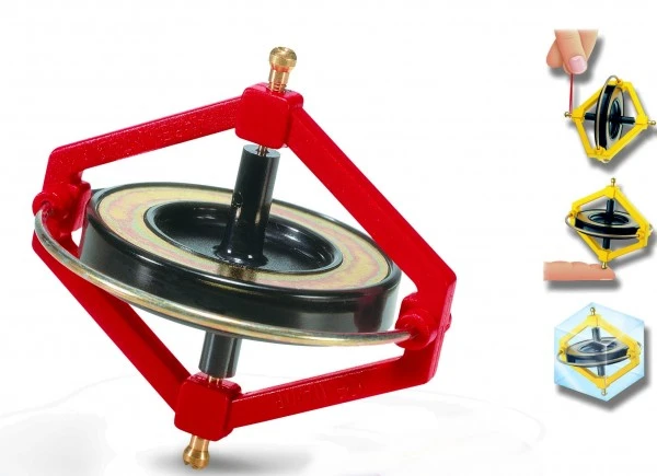 Ist der Kreisel in vollem Schwung wird er so stabil, dass verblüffende Experimente mit ihm durchgeführt werden können. Der Kreisel kann auf der Fingerspitze, einer Schnur oder einem Glasrand balanciert werden. Auch horizontal schwebt er stabil in einer Schnurschlaufe – total verrückt.