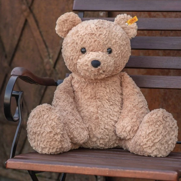 Der 55 cm große Teddybär Jimmy aus der Reihe „Soft cuddly friends“ von Steiff, ist der ideale Kuschelbegleiter. Ein großer knuffiger Plüschteddy, den man richtig drücken kann ! • Steiff-Bär mit Knopf im Ohr
